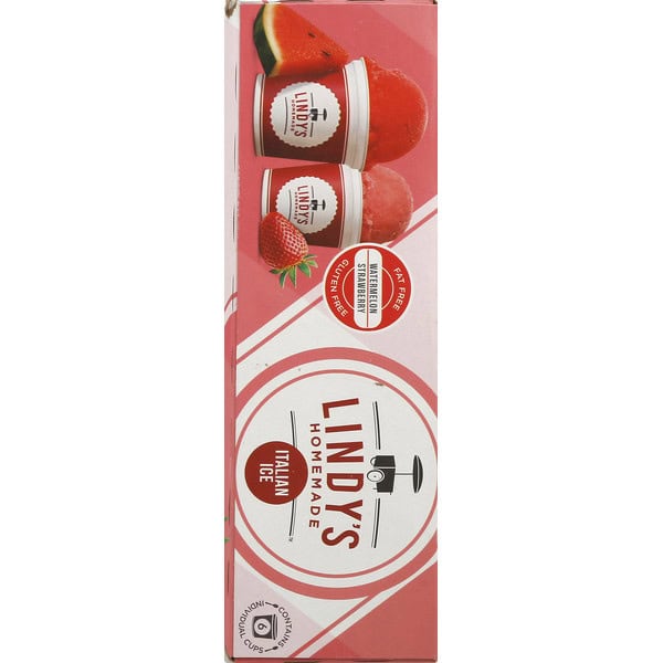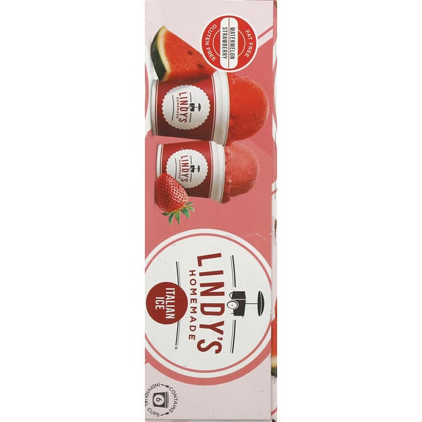 Watermelon; strawberry. Naturally & artificially flavored. Fat free. Gluten free. Homemade. Contains 6 individual cups. 3 cups of each flavor. Lucky Lindy started with a dream to serve Italian Ice from street carts, as they do in Italy. So, he began crafting original recipes in his kitchen and sharing them with the whole neighborhood. Today, Lindy’s neighborhood has grown to include the whole country. And you don’t even have to visit a Lindy’s street cart to get some. Just open your freezer door and Lindy’s Homemade Italian Ice is delivered right from Lindy’s kitchen to yours. Now who’s lucky? Facebook. Pinterest. Instagram.