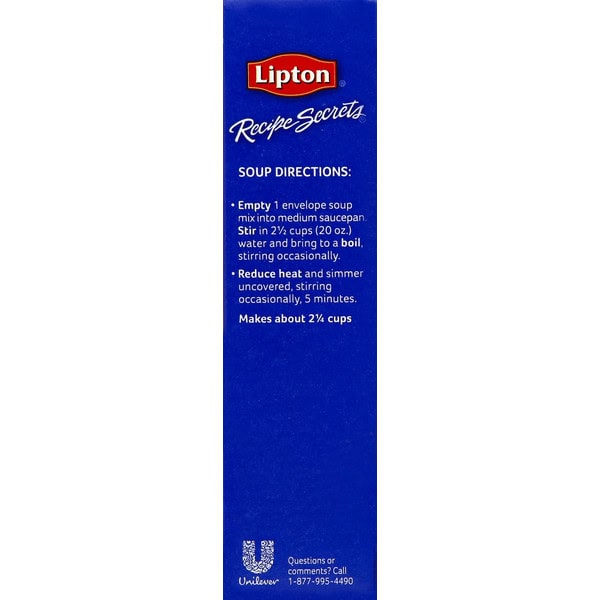 Soup Directions: Empty 1 envelope soup mix into medium saucepan. Stir in 2-1/2 cups (20 oz) water and bring to a boil, stirring occasionally. Reduce heat and simmer uncovered, stirring occasionally, 5 minutes. Makes about 2-1/4 cups.