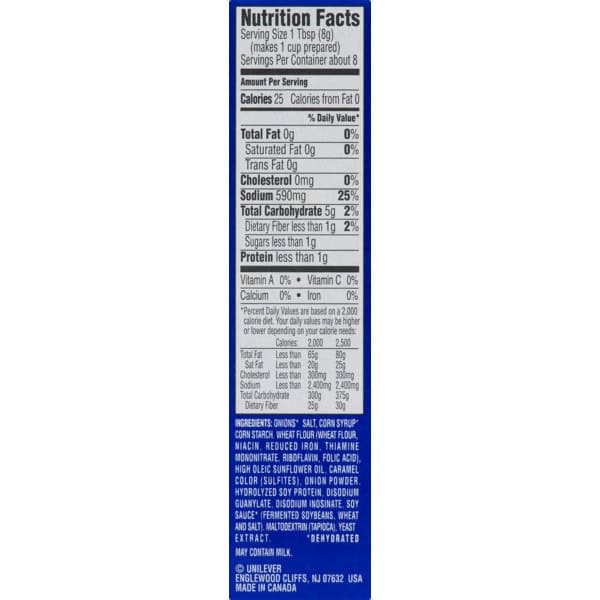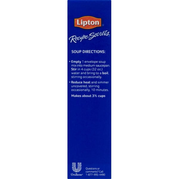 • Lipton Recipe Secrets Beefy Onion Soup and Dip Mix has a classic onion beef broth flavor