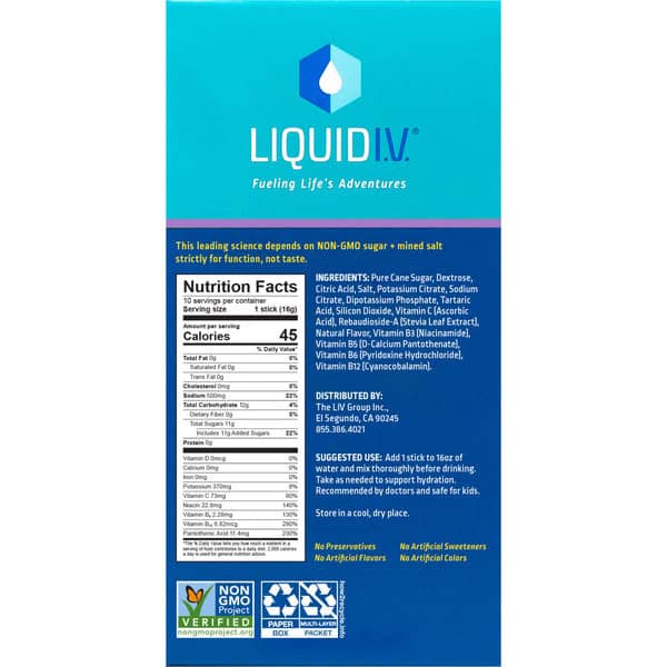 Non-GMO and made with premium ingredients, Hydration Multiplier Electrolyte Powder Drink Mix contains 5 essential vitamins including Vitamins B3, B5, B6, B12 and Vitamin C. It’s also gluten-free, soy-free, and dairy-free.