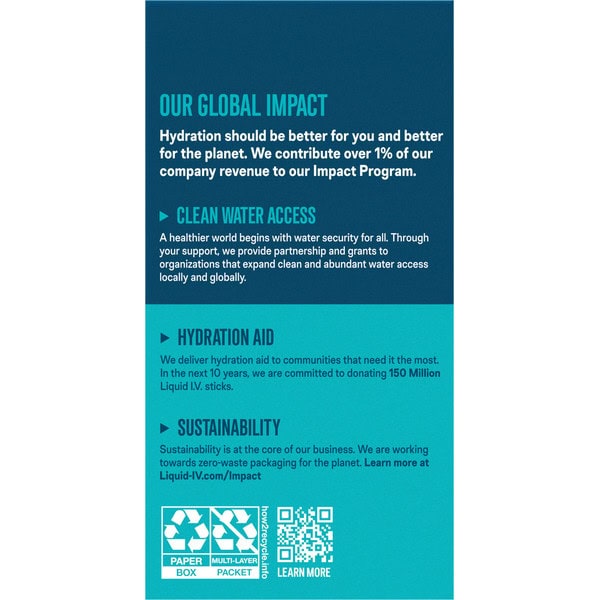 With each purchase you make, we donate a serving to someone in need around the world. Liquid I.V. provides much-needed hydration in disaster zones, hospitals, impoverished communities, and emergency living quarters across the globe. Since 2015, we have donated over 19 million servings.