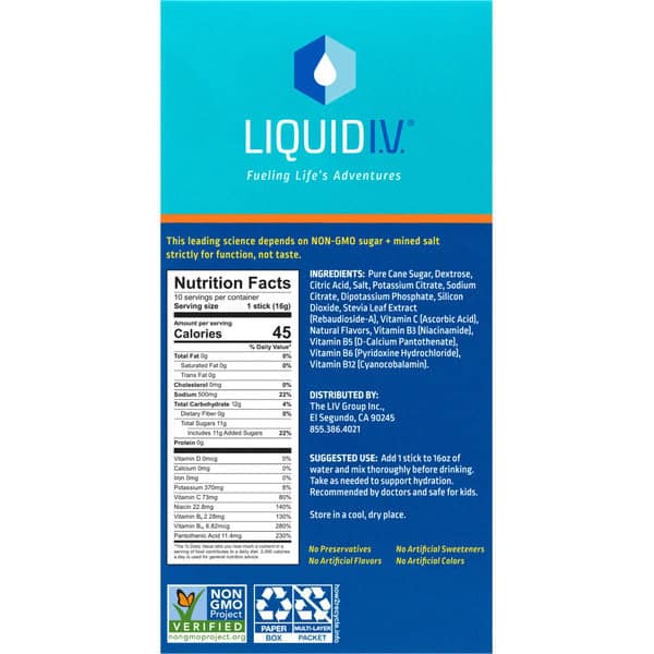 Non-GMO and made with premium ingredients, Hydration Multiplier Electrolyte Powder Drink Mix contains 5 essential vitamins including Vitamins B3, B5, B6, B12 and Vitamin C. It’s also gluten-free, soy-free, and dairy-free.