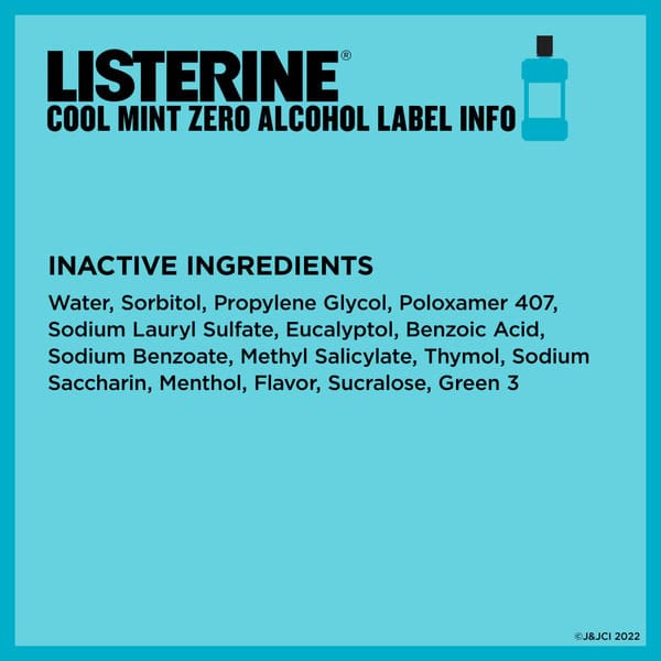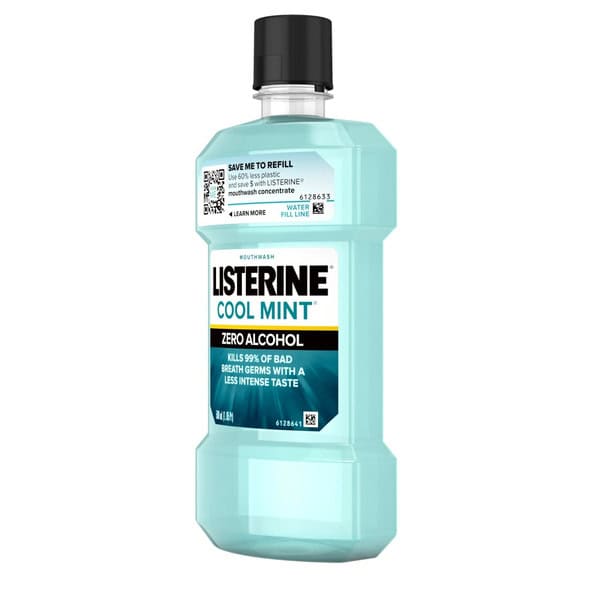 • Alcohol-free Listerine Zero Alcohol Cool Mint Mouthwash for fresher breath