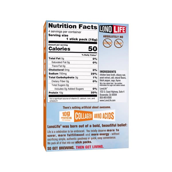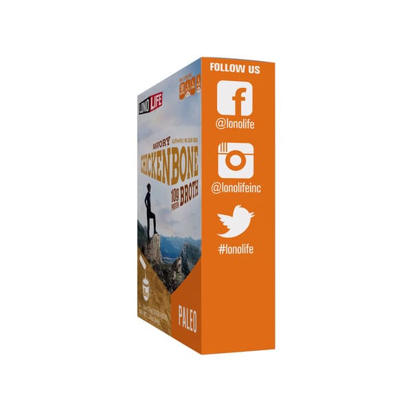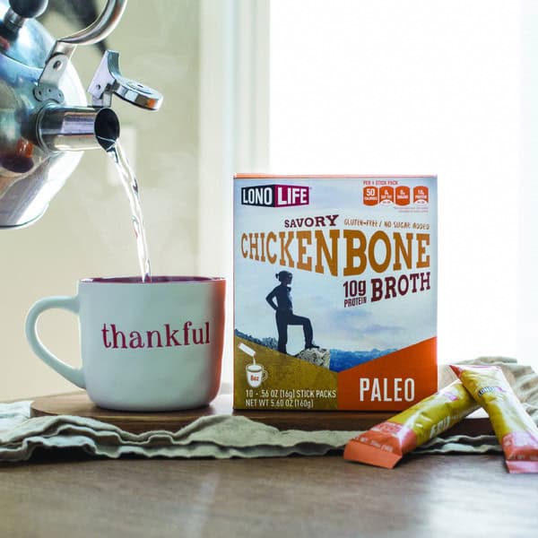 Featuring all the benefits and great taste of slow-cooked broth, LonoLife’s Paleo/Keto-friendly, protein-packed, and nutrient-dense chicken bone broth keeps you fueled when you’re crunched for time — at home, at the office, in a college dorm, or on the road. Ideal for those following low carb, Paleo, and Keto diets, this easy-to-digest broth is packed with collagen-rich protein and fiber that provide a number of different health benefits — from improving joint health to nourishing hair, skin, and nails to improving digestive and immune systems. LonoLife makes its chicken bone broths the old-fashioned way with the highest quality ingredients, hearty roasted bones and a rich, savory blend of chicory root, sage, thyme, black pepper, and sea salt — and a variety of herbs and spices that’s a carefully guarded family secret. Perfect for your on-the-go lifestyle, LonoLife broths are available in convenient 100% recyclable single serve cups that fit in most single serve beverage brewing systems and Stick Packs that require nothing more than a hot cup or bowl of water. The chicken bone broth is also available in a scoopable 8-ounce container that provides 15 servings. LonoLife creates healthy, Paleo-friendly bone broth soup snacks that are convenient for busy, active, and healthy lifestyles.