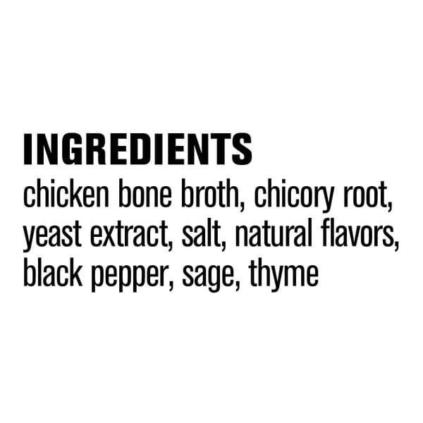 Chicken Bone Broth, Chicory Root, Yeast Extract, Salt, Natural Flavors, Black Pepper, Sage, Thyme