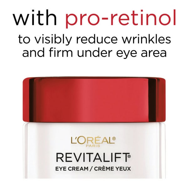 • Revitalift Anti-Wrinkle + Firming Eye Cream Treatment is formulated specifically for the delicate skin around your eyes. This area of the skin can be prone to early signs of visible skin aging, including wrinkles, loss of skin elasticity, and dark circles. In as little as 4 weeks, this anti-wrinkle & firming eye cream can help visibly firm and smooth the skin around your eyes. Formulated with Pro Retinol and Centella Asiatica, this eye cream helps minimize the appearance of wrinkles, firms skin, and visibly reduces dark circles.