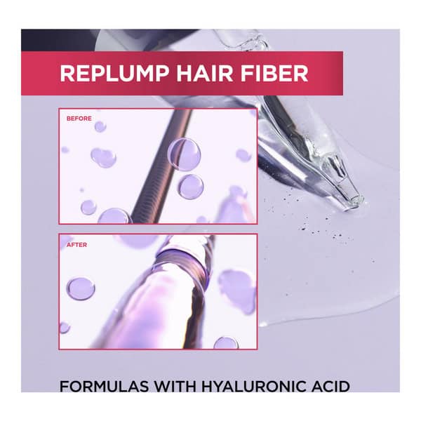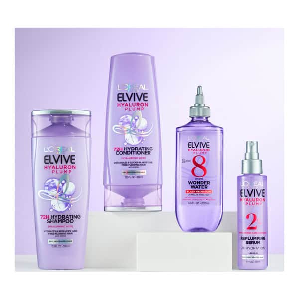 • Hydrating Routine – Gently cleanse with Elvive Hyaluron Plump Shampoo. Prime with Flash Hydration Wonder Water, then condition to detangle and moisturize. Finish with the Replumping Serum to instantly revitalize hair