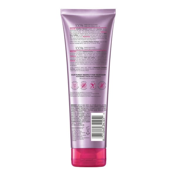 • COLOR PROTECTION + MOISTURE: You don’t have to choose between protecting the color you love and caring for your hair needs. Elevate your hair care routine, EverPure Moisture Sulfate Free Shampoo & Conditioner for color treated hair with Rosemary Botanicals deeply replenishes dry hair with 3X more moisture*** with no weigh down, lush-touch softness and luminous shine. Color-treated hair requires special care. Our formula’s are especially gentle on color. 100% Sulfate Free Shampoo and Conditioner, Paraben Free, No Harsh Salts, No Harsh Surfactants, Dye Free, Gluten Free*, Vegan Formula** Experience a sensorial lather and a fresh fragrance that blooms. This scent features notes of jasmine and juniper berry.