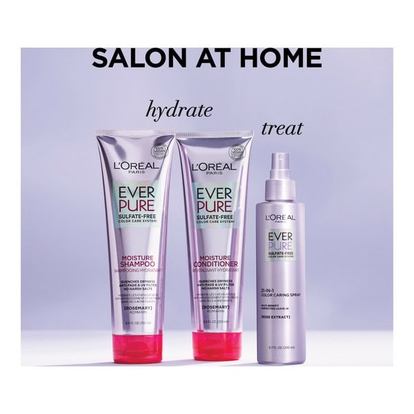 • L’Oreal Paris EverPure Moisture Sulfate Free Shampoo and Conditioner for color treated hair provides moisture without weigh down