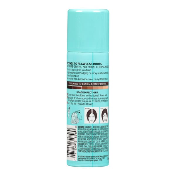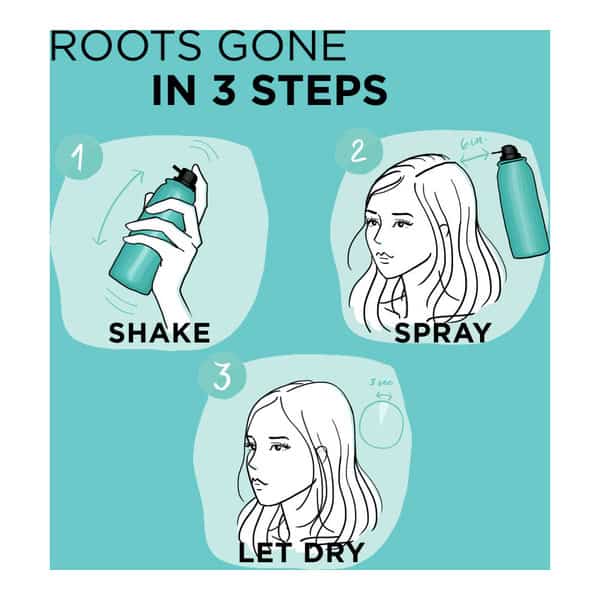 Directions: shake well. Hold can about 6 inches from hair. Spray color onto new growth and partly through the length of the hair to blend in the color. Comb and let dry for 1 minute.