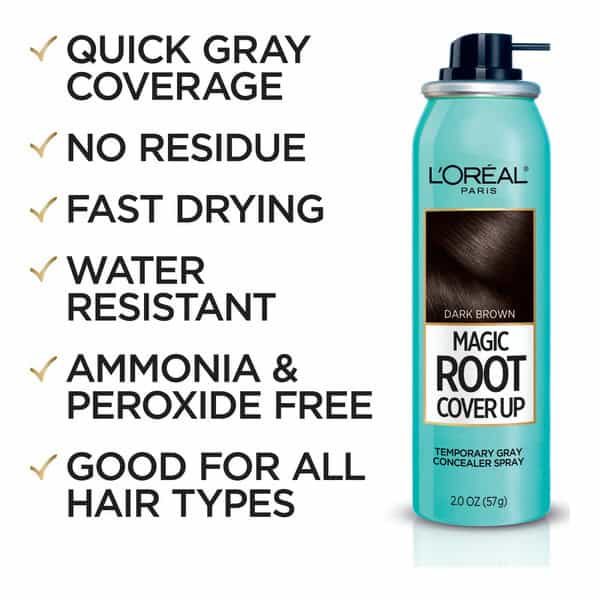 • Colored Hair Spray for Gray Roots. Perfect for in-between color or salon visits, Magic Root quickly gives coverage to grey roots within seconds and lasts until your next shampoo