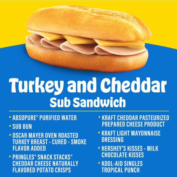 • Features real, epic food including Oscar Mayer oven roasted turkey breast, Kraft cheddar pasteurized prepared cheese product, sub bun and Kraft Light Mayo
