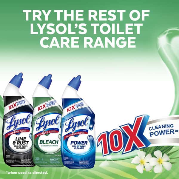 Lysol Toilet Bowl Cleaner cleans and disinfects toilets. The thick formula sticks to the bowl for better cleaning. Lysol liquid toilet bowl cleaner kills 99.9% of viruses & bacteria with complete clean power. The angled bottle targets hard-to-reach areas, including under the rim, to leave your entire toilet bowl sparkling clean, deodorized and disinfected.