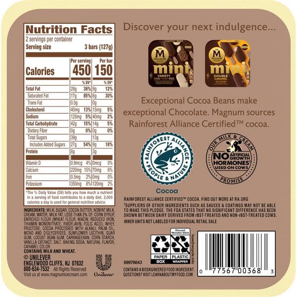 Your dream dessert is here. Bring luxury to your freezer with magnum mini white chocolate & cookies, our new ice cream bars that taste like pure indulgence, with only 150 calories per bar. You’ll experience delectable, velvety vanilla ice cream swirled with premium chocolate ganache, wrapped with crunchy dark chocolate cookie pieces and our finest white chocolate. Prepare to have your taste buds delighted. Magnum mini white chocolate cookies bring the best of white chocolate and dark chocolate together in one mouthwatering frozen treat. If you like magnum mini white chocolate & cookies, you’ll want to explore the full range of magnum ice cream bars and discover an expansive world of pleasure. Each flavor is made with belgian chocolate that uses cocoa beans sourced from rainforest alliance certifiedâ„¢ farms. Belgian chocolate has an outstanding reputation for its smooth, rich flavor and tempting chocolate aroma. It’s recognized around the world because of its meticulous adherence to ‘old world’ craftsmanship. Magnum ice cream bars are crafted in this rich heritage and are made with a signature belgian chocolate recipe developed specifically for us. While still warm, this delicious coating wraps around our velvety ice creams, instantly cooling to leave our signature solid, thick shell – ready and waiting to be cracked. From intense to sweet to salty to dark, which one will satisfy your next indulgence?
