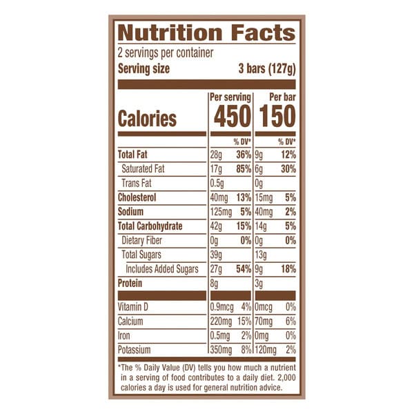 Milk, Sugar, Cocoa Butter, Nonfat Milk, Cream, Water, Milk Fat, Less Than 2% Of: Corn Syrup, Enriched Flour (wheat Flour, Niacin, Reduced Iron, Thiamin Mononitrate, Riboflavin, Folic Acid), Whey, Fructose, Cocoa Processed With Alkali, Palm Oil, Mono And Diglycerides, Sunflower Lecithin, Guar Gum, Locust Bean Gum, Carrageenan, Corn Starch, Vanilla Extract, Salt, Baking Soda, Natural Flavor, Caramel Color