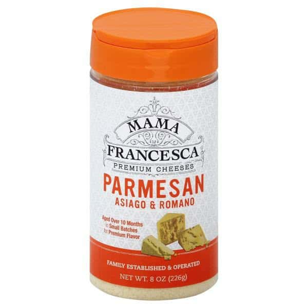 Premium cheeses. Aged over 10 months in small batches for premium flavor. Family established & operated. Product may settle. Package contains 8 oz. Hand Crafted Small Batches: All of Mama Francesca’s grated cheeses are made from 20 lb hand crafted premium cheese wheels. We use only the finest European cultures and age our parmesan a full 10 months or more! Our cheeses are born of a proud family tradition that produces a premium flavor perfect for your favorite recipes. – Mama Francesca. Please visit mamafrancescacheese.com for family recipes and more. Authentic Italian cheeses proudly produced in the USA.