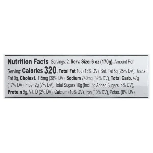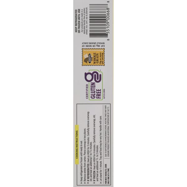 Cook thoroughly. Cooking Instructions: Keep refrigerated or frozen until ready to eat. Remove entree from carton. Pierce overwap in two places. If Refrigerated: Heat on high for 3 minutes. Carefully remove overwrap. stir, and heat an additional 1 to 1-1/2 minutes. If Frozen: Heat on high for 4 minutes. Carefully remove overwrap, stir, and heat an additional 1-1/2 to 2 minutes. Let stand for 1 minute. Tray and food may be very hot. Handle with care. For best results, cook only one at a time. Due to differences in microwave ovens, heating times may vary. (Ensure product reaches an internal temperature of 165 degrees F).