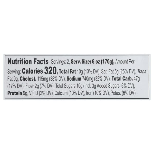 Cook thoroughly. Cooking Instructions: Keep refrigerated or frozen until ready to eat. Remove entree from carton. Pierce overwrap in two places. If Refrigerated: Heat on high for 3 minutes. Carefully remove overwrap, stir, and heat an additional 1 to 1-1/2 minutes. If Frozen: Heat on high for 4 minutes. Carefully remove overwrap, stir, and heat an additional 1-1/2 to 2 minutes. Let stand for 1 minute. Tray and food may be very hot. Handle with care. For best results, cook only one at a time. Due to difference in microwave ovens, heating times may vary. (ensure product reaches an internal temperature of 165 degrees F.