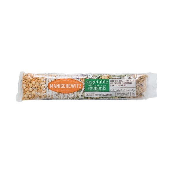 Green Peas, Barley, Yellow Peas, Lima Beans, Enriched Egg Noodles (durum Flour, Egg Yolk, Niacin, Ferrous Sulfate, Thiamine, Riboflavin & Folic Acid), Salt, Sugar, Mushrooms, Canola Oil, Onions, Cornstarch, Carrots, Celery, Tomatoes, Bell Peppers, Turmeric, Spinach.