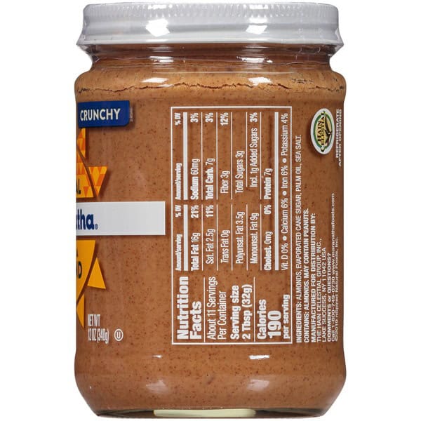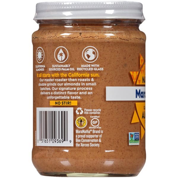California almonds. It all starts with California sun. Our signature process then double grinds our almonds to deliver the distinct MaraNatha flavor, and an unforgettable great taste. No stir! Sustainably source palm oil. Please recycle this container.