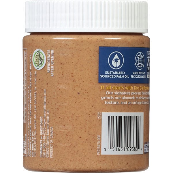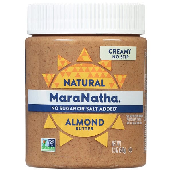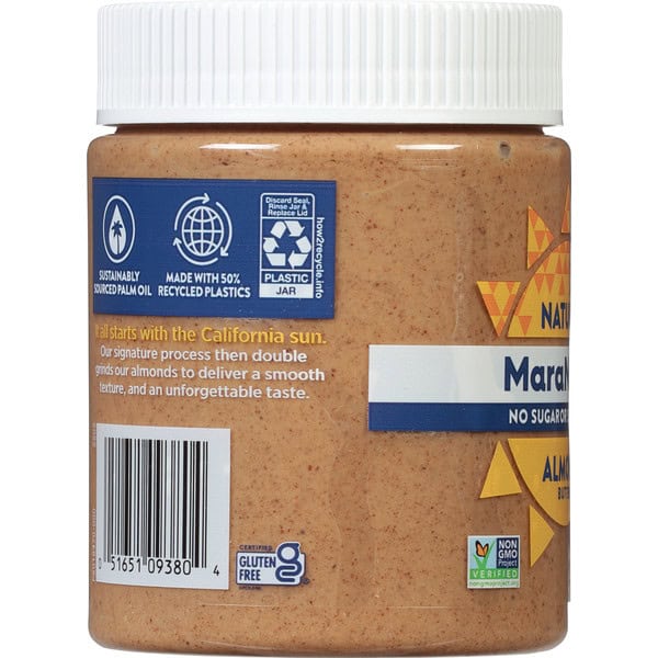 No added sugar (Not a low calorie food) or salt (See nutrition information for total fat and saturated fat content). Gluten free. Non GMO Project verified. nongmoproject.org. New! Save the bees. MaraNatha Brand is a proud supporter of Bee Conservation & the Xerces Society. For over 30 years, we’ve hand selected the finest California almonds for our nut butters. Our unique, double grind process delivers a signature taste you’ll love. Spooning with MaraNatha(underscore)love at first taste. www.maranathafoods.com. Comments or questions? Call 1-800-749-0730. Please recycle this container. Product of Oregon.