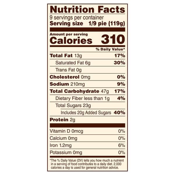 Filling: Apples, Sugar, Water, Corn Starch, Modified Corn Starch, Salt, Ascorbic Acid And Citric Acid (to Promote Color Retention), Cinnamon. Crust: Enriched Wheat Flour (wheat Flour, Niacin, Reduced Iron, Thiamine Mononitrate, Riboflavin, Folic Acid), Soybean Oil And Hydrogenated Soybean Oil, Water, Dextrose, Salt, Dough Conditioner (sodium Metabisulfite). Crumb Topping: Enriched Wheat Flour (wheat Flour, Niacin, Reduced Iron, Thiamine Mononitrate, Riboflavin, Folic Acid), Brown Sugar, Palm Oil, Sugar, Salt, Spice, Dextrose.