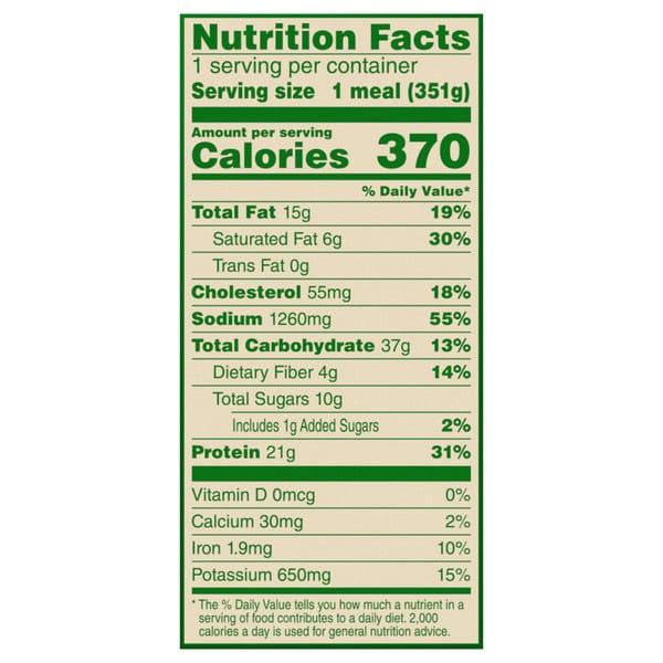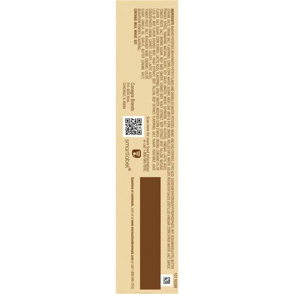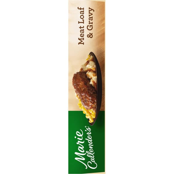 Meat loaf in a home-style gravy with creamy mashed potatoes and corn. No artificial flavors. No artificial colors. 21 g of protein. Per Meal: 380 calories; 5 g sat fat (25% DV); 1300 mg sodium (57% DV); 5 g total sugars. US inspected and passed by Department of Agriculture. Warm, hearty & delicious: Comfort food meals you know and love – ready when you need them! SmartLabel: Scan for more food information. how2recycle.info. Questions or comments, visit us at www.mariecallendersmeals.com or call Mon-Fri, 1-800-595-7010 (except national holidays). Please have entire package available when you call so we may gather information of the label.