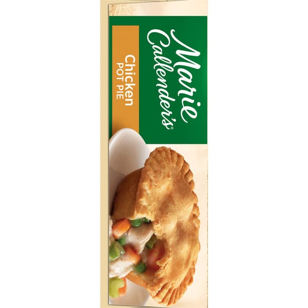 Put the taste of homemade flavor on your kitchen table with Marie Callender’s Chicken Pot Pie. This satisfying and hearty frozen pot pie features chunks of tender white meat chicken and garden vegetables with savory, made-from-scratch gravy surrounded by a golden, flaky crust that’s also made-from-scratch. Enjoy a homestyle microwave meal that includes 17 grams of protein with no preservatives and no artificial flavors or colors. Heat this comforting chicken pot pie in the conventional oven or microwave for an easy-to-prepare single-serve pot pie dinner that’s sure to satisfy. Enjoy warm, hearty ingredients and delicious homemade comfort food taste with Marie Callender’s.
