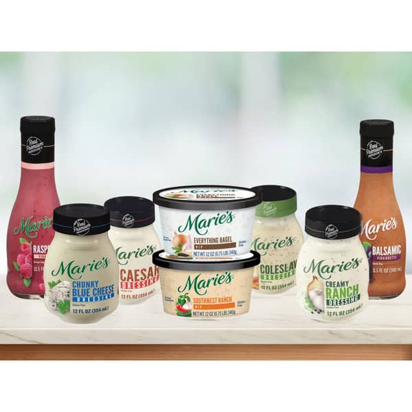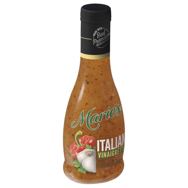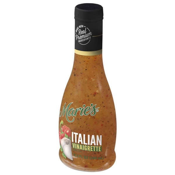 Marie’s Italian Vinaigrette is a perfect combination of oil and vinegar and garlic, onion, red bell pepper, tomatoes, and spices.