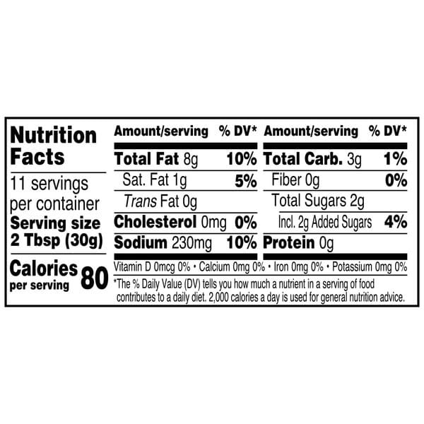 Water, Soybean Oil, Sugar, Distilled Vinegar, Salt, Extra Virgin Olive Oil, Contains Less Than 2% Of Tomatoes*, Natural Flavors, Red Bell Peppers*, Lemon Juice Concentrate Xanthan Gum, Spices, Onion*, Garlic*.