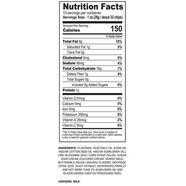 One pounder. All natural. Zero g trans fat. Great value. 16 oz best quality. The Plantain – The Taste of the Tropics: Is a delicious tropical fruit similar in texture to the banana but different in taste. The plantain could be eaten raw but it is commonly cooked before it is consumed. In making our deliciously non-sweet, crispy plantain chips, we start by carefully selecting the highest quality green plantains which are then peeled, sliced and cooked in 100% non-hydrogenated vegetable oil. You will find that our Mariquitas Classic plantain chips offer you a new and exciting tropical alternative to the potato chip. No preservatives or additives are used in the making of National Food Plantain Chips. www.nationalfood.com. Made in USA.