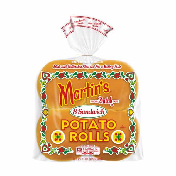 Martin’s Famous Potato Sandwich Rolls have been setting the gold standard for potato rolls since 1955. The sweet, buttery taste, soft texture, and distinctive golden color make them an instant favorite with both children and adults. Martin’s Sandwich Potato Rolls, made with only high quality ingredients such as potatoes, enriched wheat flour and nonfat milk, are perfect for any sandwich that you want to be a winner or Famous”! It’s the perfect size for all your regular summer grilling needs, able to stand up to a big, juicy patty with all your favorite fixings. Its subtle sweetness perfectly complements that salty burger or tangy barbecue, and its soft, plush texture adds just the right amount of bite without throwing off the meat-to-bun ratio. Shelf-stable and ready to eat.