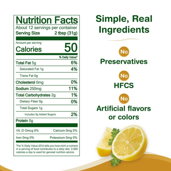• ELEVATED RECIPE, NEXT LEVEL TASTE: With 50 calories and one gram of sugar per serving, our reimagined lemon vinaigrette brings citrusy satisfaction with flavor in mind