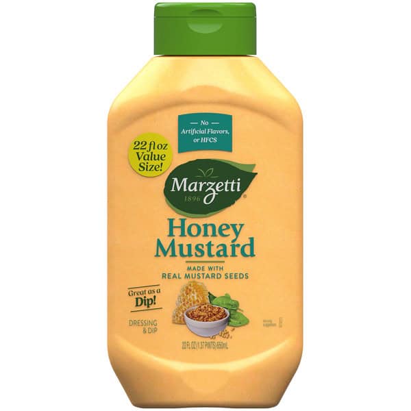 Marzetti Honey mustard dressing and dip combines the rich warmth of pure honey with the zesty kick of classic mustard. Whether drizzled over fresh salads, used as a dipping sauce for crispy chicken tenders, or spread onto sandwiches, Marzetti Honey Mustard adds a burst of flavor to every bite. Crafted without artificial flavors or high-fructose corn syrup to deliver great taste.