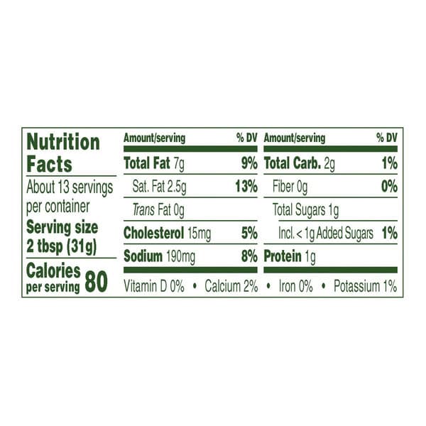 Cream (milk, Cream), Soybean Oil, Skim Milk, Water, Distilled Vinegar, Enzyme Modified Egg Yolk, Contains 2% Or Less Of: Sugar, Modified Cornstarch, Salt, Onion*, Lactic Acid, Spice, Dill Weed, Dextrose, Monosodium Glutamate, Lemon Juice Concentrate, Gelatin, Guar Gum, Potassium Sorbate And Sodium Benzoate Added As Preservatives, Mono And Di-glycerides, Natural And Artificial Flavors, Xanthan Gum, Sodium Phosphate, Garlic*, Acetic Acid, Citric Acid, Phosphoric Acid, Calcium Disodium Edta Added To Protect Flavor.