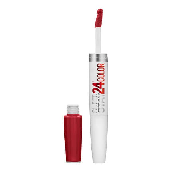 • Meet the wonder that stretches the limits of long-lasting lip color. Our liquid formula lasts for 24 hours and features an ultra-conditioning balm to keep lips moisturized throughout the day. The exclusive Microflex technology in Super Stay 24 Liquid Lipstick glides on and looks gorgeous all day, ensuring that color won’t cake, flake, feather, transfer or dry. Available in a wide variety of smile-brightening shades. 2 easy steps in 1 convenient tube. Step 1. Apply liquid lipstick to clean, bare lips. Step 2. Allow two minutes to dry, then apply the ultra-conditioning balm to seal in moisture. Reapply balm as needed. To remove, use Super Stay Eraser Lip Color & Lipstick Remover.