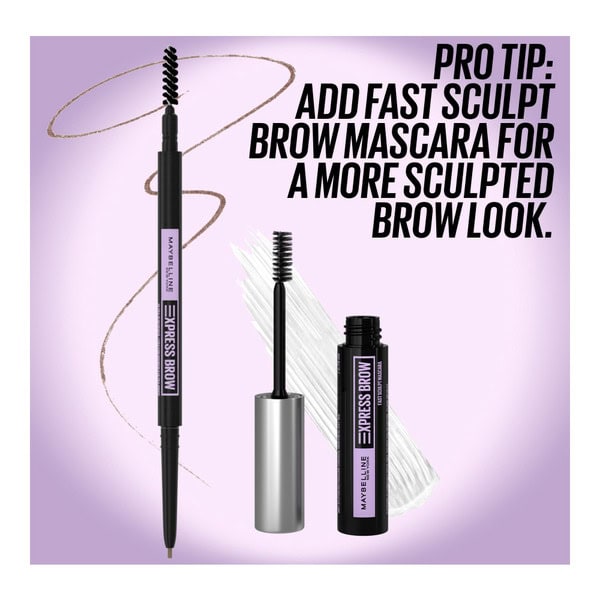 • Take the express to precisely shaped brows. Meet Maybelline New York’s Express Brow Ultra Slim Pencil. It’s the foolproof way to enhanced and defined brows, so you can say goodbye to sparse looking eyebrows and hello to filled, natural-looking eyebrows. Thanks to its break-resistant formula and built-in spoolie brush, this ultra fine eyebrow pencil creates precisely defined brows—without skipping or tugging. Get your ticket to effortless application and express precision. Available in seven brow shades. Ophthalmologist tested. Suitable for contact wearers.