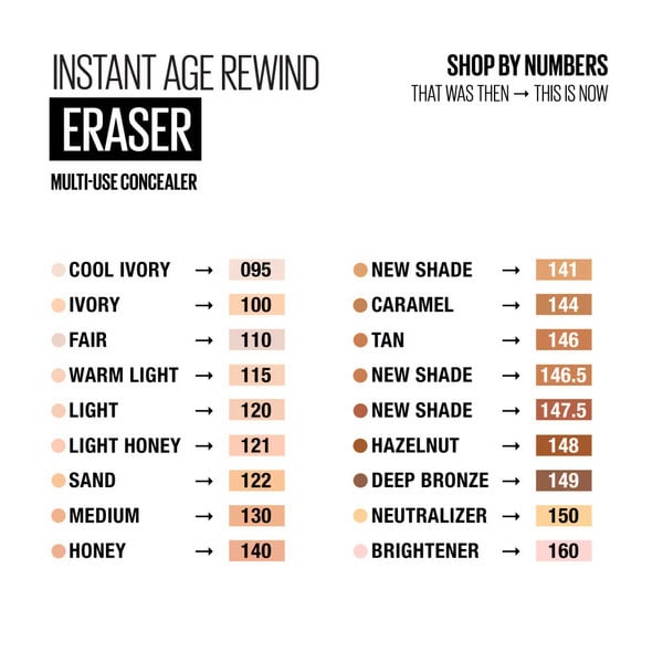 • Maybelline New York’s Instant Age Rewind Eraser does it all and then some—in a click, Its easy-to-use sponge tip has you covered, Just apply, click, cover and go with this makeup must-have