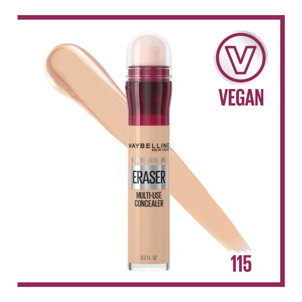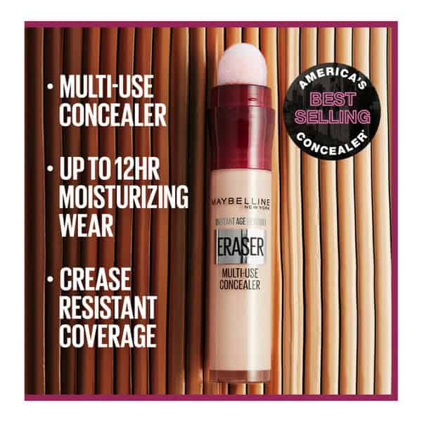 • Maybelline New York’s Instant Age Rewind Eraser does it all and then some—in a click, Its easy-to-use sponge tip has you covered, Just apply, click, cover and go with this makeup must-have