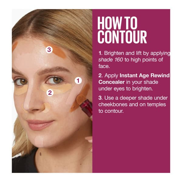 • Maybelline New York’s Instant Age Rewind Eraser does it all and then some—in a click, Its easy-to-use sponge tip has you covered, Just apply, click, cover and go with this makeup must-have