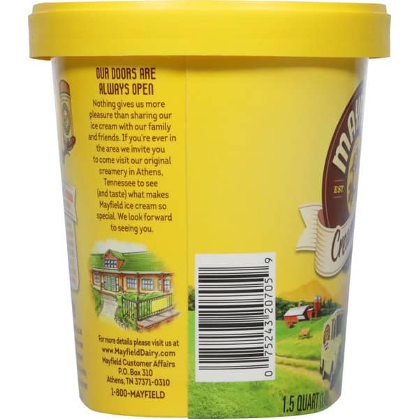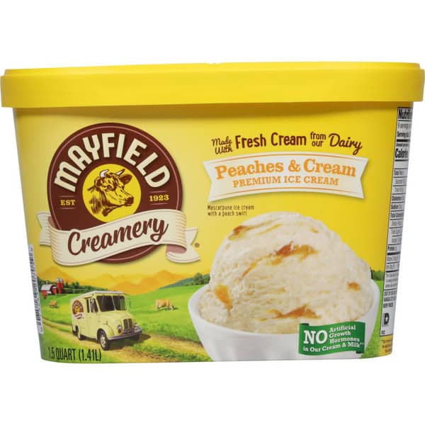 • One 1.5 quart Mayfield Peaches and Cream Ice Cream Tub