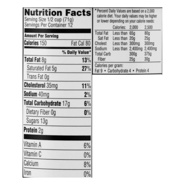 Cream, Buttermilk, Whey, Sugar, Corn Syrup, Skim Milk, Natural Flavors, Plant Based Gums (guar, Tara), Annatto (color).