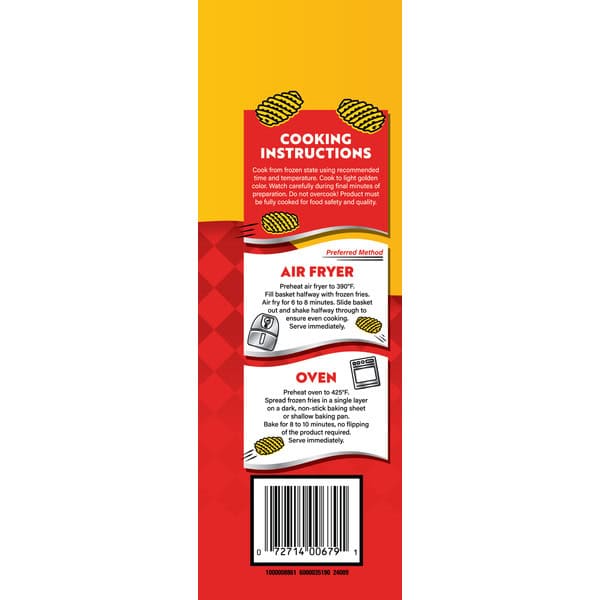 • Crispy and delicious waffle cut french fries with a yummy potato flavor that the whole family will love