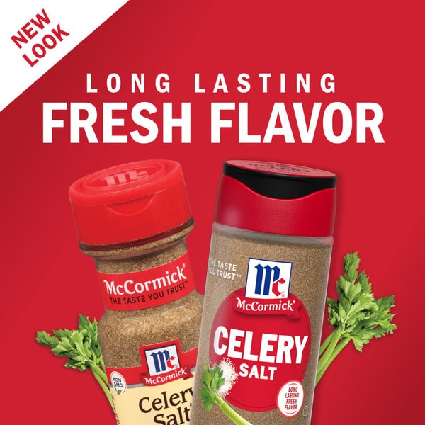 A classic blend of celery seed and salt, McCormick Celery Salt adds zest to your favorite recipes. It brings fresh flavor to salads and dips. Our celery salt always starts with whole celery seeds. It adds a crisp celery flavor to your favorite summertime dishes like cucumber salad with dill, deviled eggs, and mayo-based chicken, tuna, pasta and potato salad. It also makes a great coleslaw seasoning. For delicious savory taste your family will love, use our celery salt on roast meats and poultry or meatloaf. Replace plain salt with our homestyle blend of dried celery seed and salt in soups and stews. Celery salt is a must in tomato juice and homemade Bloody Marys. For an extra layer of flavor and texture, use it to rim the beverage glass. Packaging may vary.