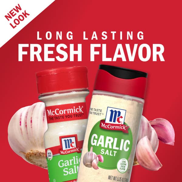McCormick® Garlic Salt is an instant flavor booster for quick and easy meals. We start with whole heads of fresh garlic, which are dried and ground before blending with a touch of garlic oil and salt. The drying process mellows the flavor and adds a subtle sweetness. The result is a savory beef, pork, chicken, turkey or seafood. Garlic salt and ground beef make weeknight dinners a snap – use for burgers, chili, tacos and meatloaf, or casseroles like shepherd’s pie. Add to stir-fries, sauteed veggies, creamy dips, potatoes, pasta, eggs, salad dressings and more. It also makes a great base for dry rubs and brines for meats. Use as versatile seasoning anywhere you’d use regular salt and want to punch up the flavor.
