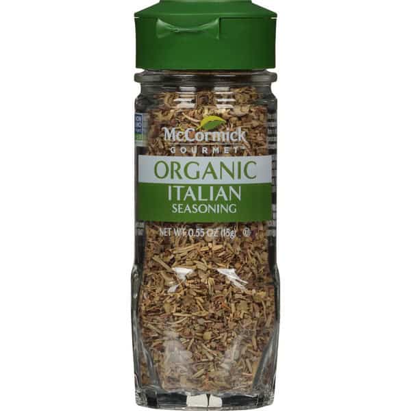 McCormick Gourmet Organic Italian Seasoning brings the flavor of Italy right to your table! This fragrant medley of basil, rosemary, thyme, marjoram, sage and oregano heightens the taste of everything from traditional Italian recipes to chicken, seafood and roasted vegetables. This classic blend of sweet aromatic herbs from Italian cuisine is a staple in American kitchens. Use it to add authentic flavor to pasta sauces, Chicken Parmesan, vinaigrettes, pizza and minestrone. So versatile and convenient, it’s an all-purpose herb seasoning for almost any vegetable, soup, bean salad or hearty braised meat dish. Mix Italian Seasoning with spices like garlic powder and pepper to use as a rub for roast meats or poultry or a seasoning for meatballs.