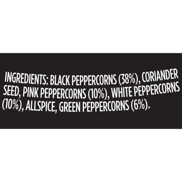 McCormick Non GMO Peppercorn Medley Adjustable Grinder, McCormick Peppercorn Medley Grinder is a colorful blend of black, white, green, and pink peppercorns, with whole allspice and coriander. The built-in adjustable grinder offers a coarser grind for seasoning meats or a finer grind for dishes like stews, vegetables, or eggs. Our whole peppercorn and spice medley brings unique flavor and color to your favorite dishes. It adds contrasting sharp and mild heat from the peppercorns and complex spice notes from allspice and coriander. A simple turn of the red tab adjusts the grinder from coarse ground to finely ground pepper. Then turn upside down and twist over everything from grilled meats to pastas and salads. Keep in the kitchen, at the table, or by the grill for freshly ground flavor anytime.