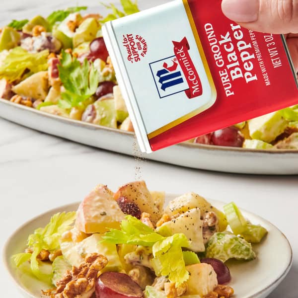 McCormick Pure Ground Black Pepper is an essential spice that is beloved around the world. A shake, spoon, or pour of this essential pantry staple delivers a sharp aroma and kick of earthy heat to an endless array of meals and recipes. Our ground black pepper always starts with premium, hand-harvested, whole peppercorns. When ground, the dark-brown-to-black, deep-set wrinkled peppercorns have a distinct peppery flavor that can be blended into almost any dish. Stir black pepper into soups and stews, sprinkle on omelets, salad, or vegetables, or rub on meat to season it before cooking. Black pepper mellows with cooking so keep black pepper on-hand to add a flavor pick-me-up wherever you need it. As a global leader in flavor, McCormick is proud to advance our efforts to sustainably source ingredients, starting with our ever-popular Ground Black Pepper! You can now find the Grown for Good seal proudly displayed on McCormick Ground Black Pepper tin cans – the first raw material to earn this standard.