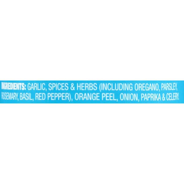 Garlic, Spices & Herbs (including Oregano, Parsley, Rosemary, Basil, Red Pepper), Orange Peel, Onion, Paprika, Celery