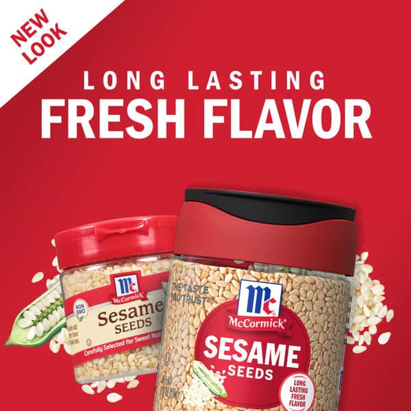 At McCormick® we carefully select our whole sesame seeds for sweet, nutty flavor. Also known as “benne seed,” the creamy white seeds are loved throughout the world in baked goods as well as savory dishes. Sesame seeds are a key ingredient in Asian, Indian and Middle Eastern cooking, where they add a nutty flavor and satisfying crunch. In Asia, they are added to stir-fries, sushi, coatings for meat, fish or tofu, and noodle dishes. In the Middle East, they are in confections, spice blends and tahini paste that’s used for hummus. Sesame seeds are essential for baking where they are sprinkled on rolls, bagels, cookies and pastries. Toasting brings out a rich, nuttier flavor- cook the seeds to hot pan for 1-2 minutes until golden brown.